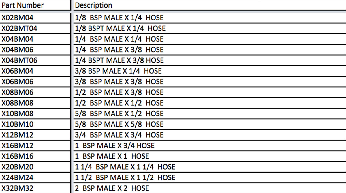 X02BM04 X02BMT04 X04BM04 X04BM06 X04BMT06 X06BM04 X06BM06 X08BM06 X08BM08 X10BM08 X10BM10 X12BM12 X16BM12 X16BM16 X20BM20 X24BM24 X32BM32
