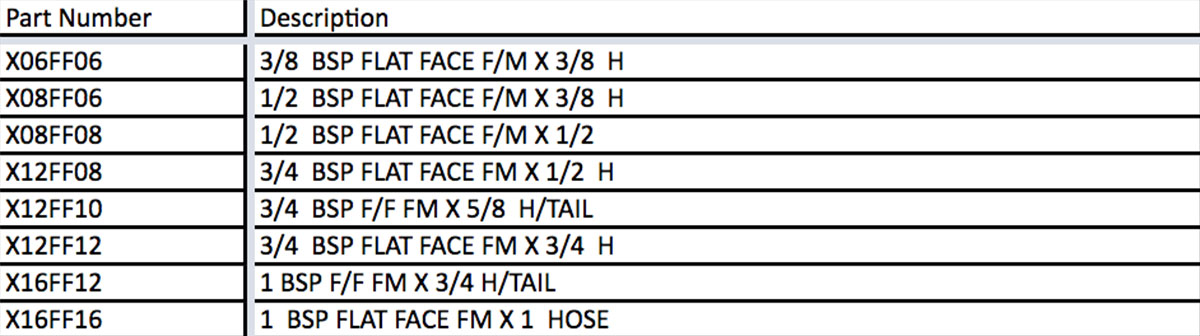 X06FF06 X08FF06 X08FF08 X12FF08 X12FF10 X12FF12 X16FF12 X16FF16
