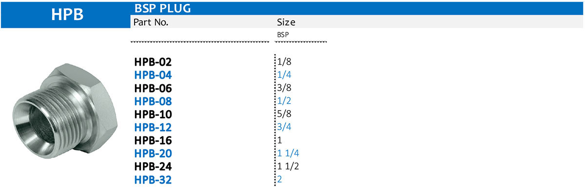 HPB-02, HPB-04, HPB-06, HPB-08, HPB-10, HPB-12, HPB-16, HPB-20, HPB-24, HPB-32